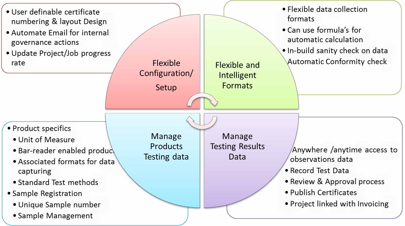 SmartTesting is a LIMS for testing lab industry, it is intelligently integrated with Customer relationship management software. All the changes to the test data are logged to support the audit exercise. Following are the key benefits could be realized by companies using SmartTesting LIMS Module.